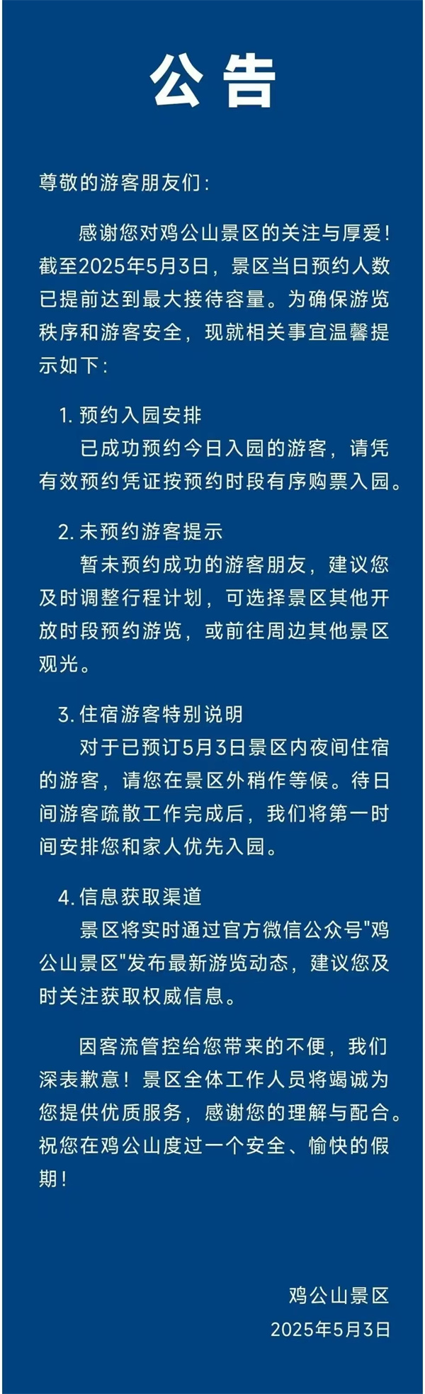雞公山景區(qū)5月3日限流公告