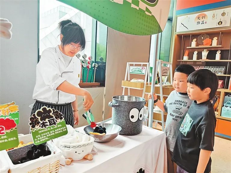 “五一”假期期間,河南博物院內,燴面變身可愛毛絨文創(chuàng),小游客正在翹首期待即將出鍋的“美食”。記者 曹萍 攝