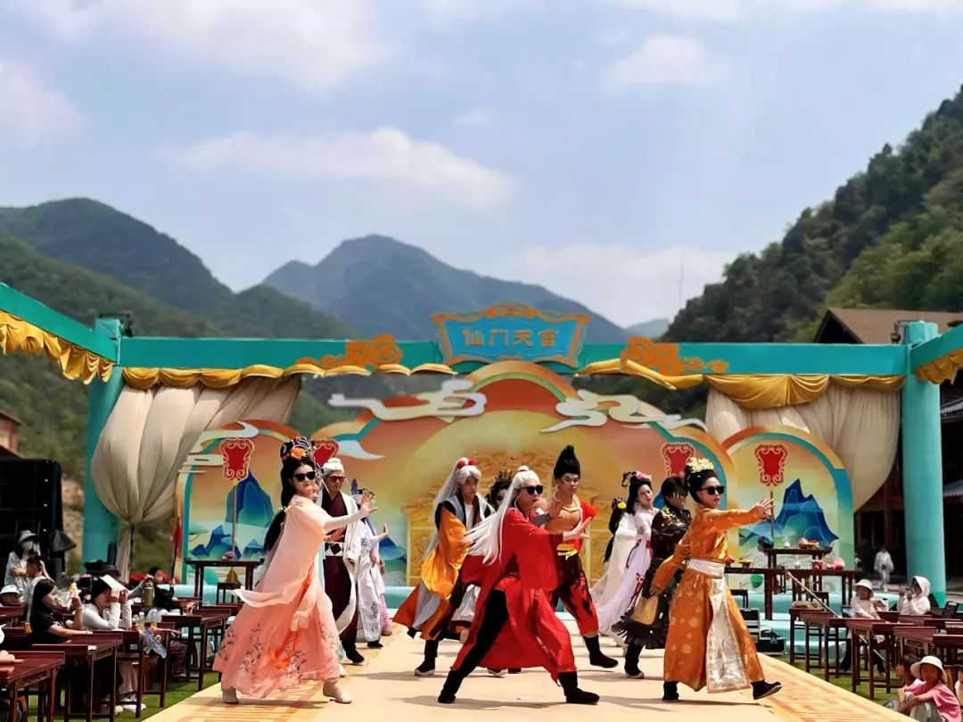 景區(qū)內(nèi),漫山綠意與潺潺溪流相映成趣,天然畫卷般的山水景觀讓游客沉浸式感受春日生機(jī)。同時(shí),融合傳統(tǒng)文化的“蟠桃會(huì)”主題活動(dòng)同步上演,通過角色扮演、互動(dòng)游戲等形式,為游客帶來穿越式文化體驗(yàn),自然與人文交織的獨(dú)特魅力備受好評。