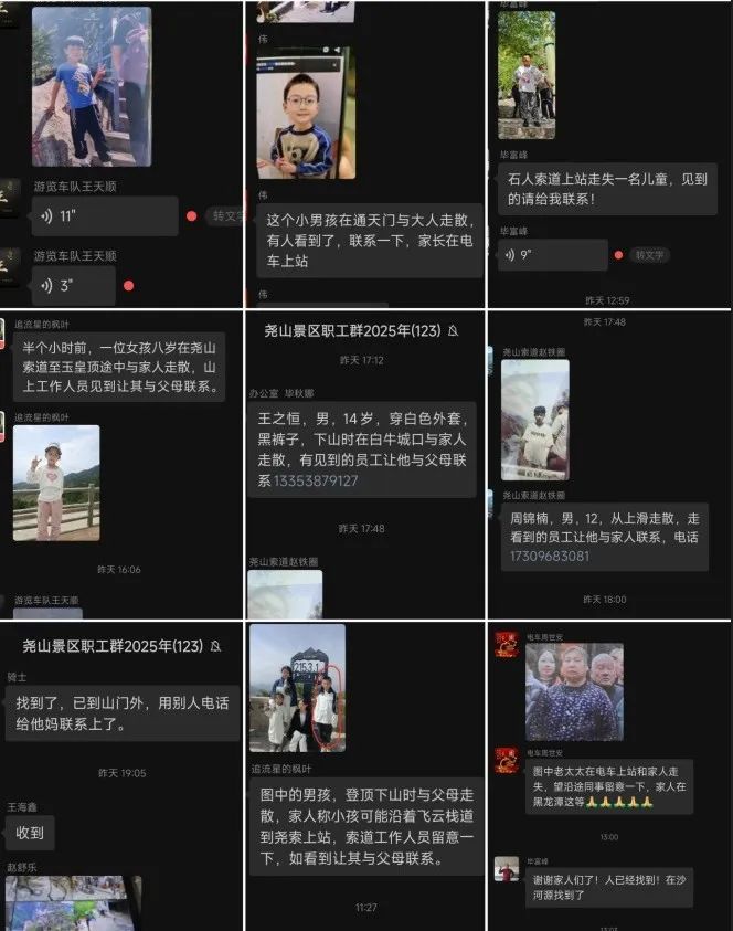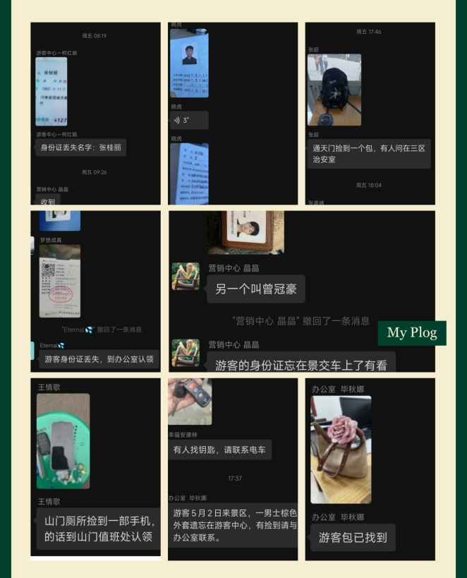 在五一假期期間,堯山風(fēng)景區(qū)的工作人員不僅在安全保障方面全力以赴,更在服務(wù)游客的過程中,多次上演暖心之舉。每天工作群內(nèi)都會(huì)有求助的信息發(fā)出:幫助游客尋找走散的老人、小孩共計(jì)9名,協(xié)助游客找回丟失的包包、衣服、鑰匙、手機(jī)等物品若干。景區(qū)以實(shí)際行動(dòng)傳遞溫暖,彰顯景區(qū)人文關(guān)懷與服務(wù)理念。