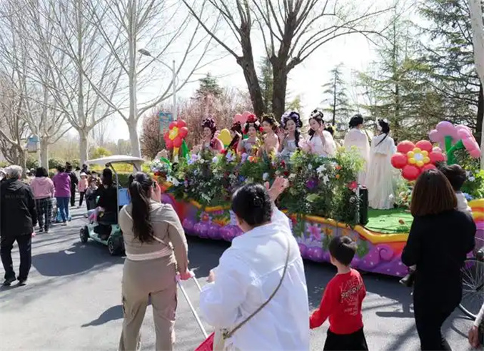 首次推出“浪漫風(fēng)車(chē)季”,5萬(wàn)只彩色風(fēng)車(chē)交織成海,形成夢(mèng)幻打卡背景,吸引游客爭(zhēng)相拍照;國(guó)風(fēng)濃郁的“月季雅集”重磅登場(chǎng),花神仙子翩躚起舞,穿插愛(ài)樂(lè)樂(lè)團(tuán)的經(jīng)典樂(lè)章演奏,將傳統(tǒng)美學(xué)與現(xiàn)代藝術(shù)完美碰撞;花車(chē)巡游貫穿園區(qū),花神演員身著華服與游客親密互動(dòng),掀起陣陣歡呼,吸引眾多游客互動(dòng);非遺“箜篌表演”空靈婉轉(zhuǎn),再現(xiàn)千年絲路遺韻;相聲劇場(chǎng)“歡樂(lè)喜劇人”金句頻出,笑料不斷。