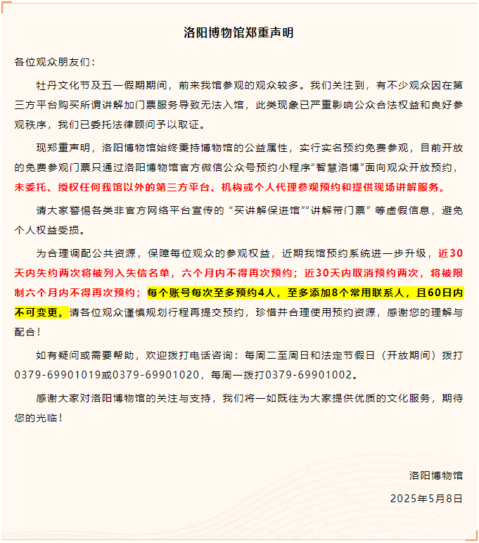 您的當(dāng)前位置:網(wǎng)站首頁 > 出行資訊 > >洛陽博物館發(fā)布鄭重聲明