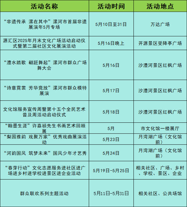 第二十二屆中國(漯河)食品博覽會將于2025年5月16-18日在中國食品名城漯河市舉辦,漯河市文化廣電和旅游局推出系列好看、好玩的文旅體活動。