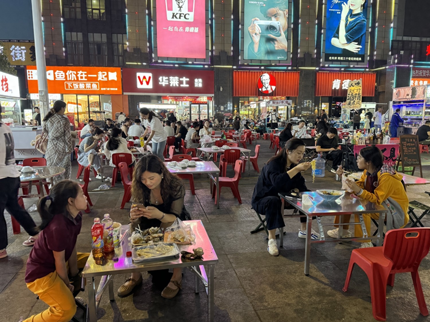 “俺們都是在這附近住的,接孩子放學后來這吃點東西,吃的、喝的全得很,環(huán)境也很好。有時候和朋友們聚餐了也會過來吃,既方便又干凈,味道也不錯。”正在吃串串的客人高興地說。