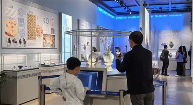 從鞏義窯的爐火純青,到絲綢之路的悠悠駝鈴;從揚(yáng)州唐城遺址的考古發(fā)現(xiàn),到印尼黑石號(hào)沉船的驚世再現(xiàn),唐青花將東方美學(xué)的精髓傳播至世界各地……婉約典雅的青花瓷文物展示,以藍(lán)白交織的光影,徐徐展開(kāi)一幅“絲路藍(lán)”與“中原白”相互交融的歷史畫(huà)卷。