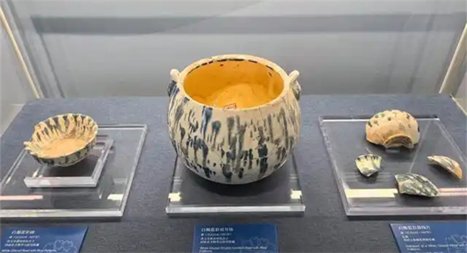 在“青花故鄉(xiāng)”展示單元,一塊來(lái)自鞏義黃冶窯的殘片,釉下鈷藍(lán)勾畫(huà)的條帶紋若隱若現(xiàn),仿佛訴說(shuō)著唐代窯工的巧思。2002年,這片瓷片的出土,讓世人的目光從景德鎮(zhèn)轉(zhuǎn)向鄭州。