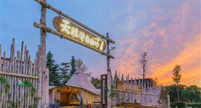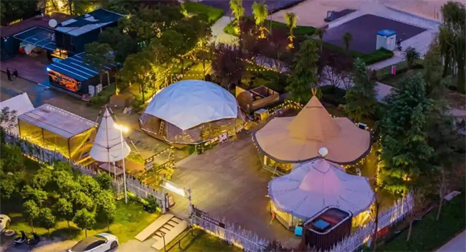 在北龍湖畔的新發(fā)展·天鵝灣自由地,夜晚是炭火與星光的合奏。5000平米的營(yíng)地里,熱氣騰騰的烤肉飄著香氣,民謠酒館的吉他聲隨風(fēng)輕蕩,后備箱市集的咖啡車點(diǎn)亮“微型夜市”。主理人禹文龍將這里定義為“戶外商業(yè)綜合體”——既非遠(yuǎn)郊露營(yíng)的“專業(yè)門檻”,也非標(biāo)準(zhǔn)化商場(chǎng)的“精致疏離”,而是城市青年觸手可及的“第三空間”。