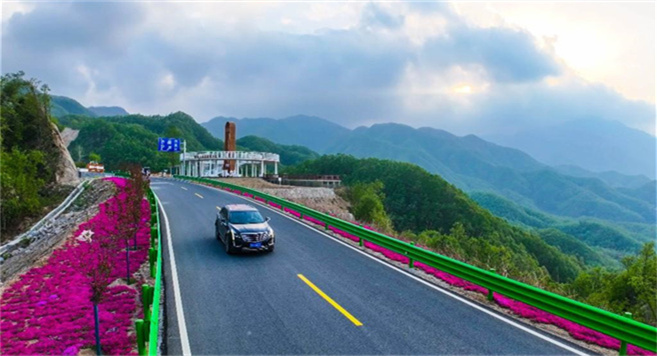 石張線(xiàn)路在建設(shè)過(guò)程中,按照“一路一景,路景交融”的理念,利用地貌特征和人文、自然景觀(guān),打造多元?jiǎng)討B(tài)景觀(guān)系統(tǒng),結(jié)合景區(qū)景點(diǎn)和城鎮(zhèn)村莊布局,增設(shè)綠道、騎行道和步道,并且全線(xiàn)融入四季花海景觀(guān)與慢行系統(tǒng),創(chuàng)新設(shè)計(jì)特色標(biāo)線(xiàn)及品牌標(biāo)識(shí),實(shí)現(xiàn)“車(chē)在路上行,人在畫(huà)中游”。