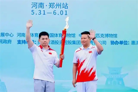 開幕式現(xiàn)場(chǎng),2012年倫敦奧運(yùn)會(huì)男子舉重69公斤級(jí)冠軍林清峰點(diǎn)燃火炬臺(tái),并與2004年雅典奧運(yùn)會(huì)女排冠軍宋妮娜、2012年倫敦奧運(yùn)會(huì)男子體操團(tuán)體冠軍郭偉陽(yáng)為2025全國(guó)體育文化宣傳推廣活動(dòng)(河南·鄭州站)全民健身火炬手們頒發(fā)火炬?zhèn)鬟f證書。