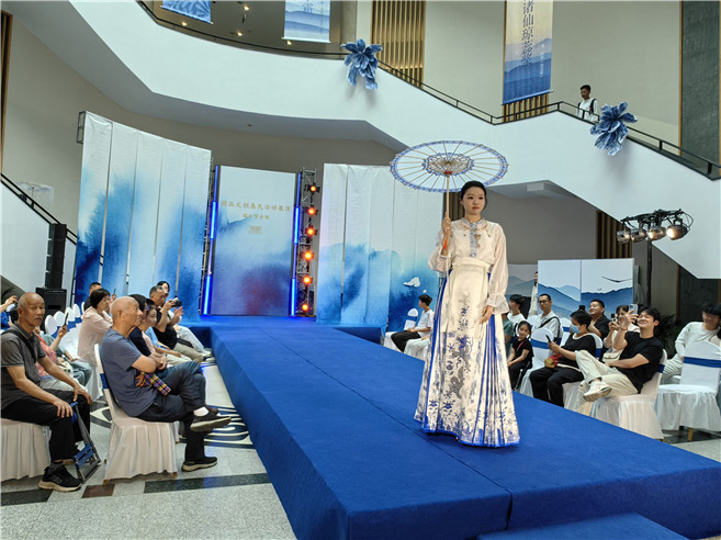 5月31日下午和6月1日上午,精品文創(chuàng)惠民活動(dòng)展演在一樓展廳舉行。鈷藍(lán)在輕紗上翩然盛放,給大家?guī)?lái)了獨(dú)特的視覺(jué)盛宴。