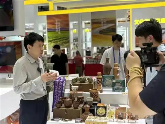 在河南館,仰韶彩陶的展臺上一件直徑一米二的花瓣紋曲腹盆作品,特別引人矚目,這是由河南仰韶科技開發(fā)有限公司的彩繪師現(xiàn)場完成的,它不僅是件展品,更是跨越時空的藝術(shù)對話。展臺四周,仰韶彩陶與現(xiàn)代創(chuàng)意碰撞出的文創(chuàng)產(chǎn)品,讓文化煥發(fā)出觸手可及的溫度。仰韶彩陶系列茶具,提取經(jīng)典紋飾的絲巾,以經(jīng)典彩陶為原型的生活用品、家居擺件,仰韶紋樣的帆布包、筆記本、鑰匙扣等極具文化內(nèi)涵,讓參會者愛不釋手、爭相購買。