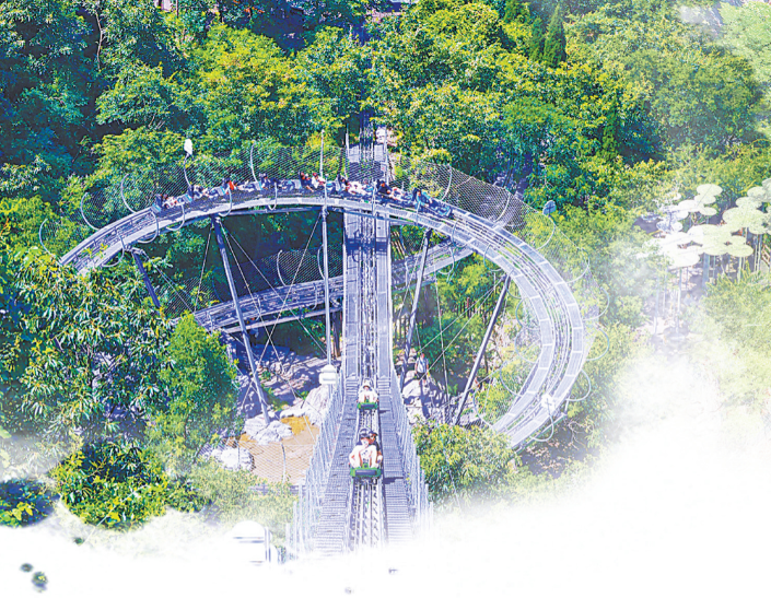 沿著山間小徑來(lái)到獼猴谷,叢林滑道成為游客下山的熱門選擇。游客通過(guò)滑道,在叢林間飛馳盤旋而下,在享受速度與激情的同時(shí),近距離感受大自然的生機(jī)與活力。