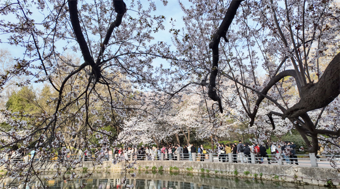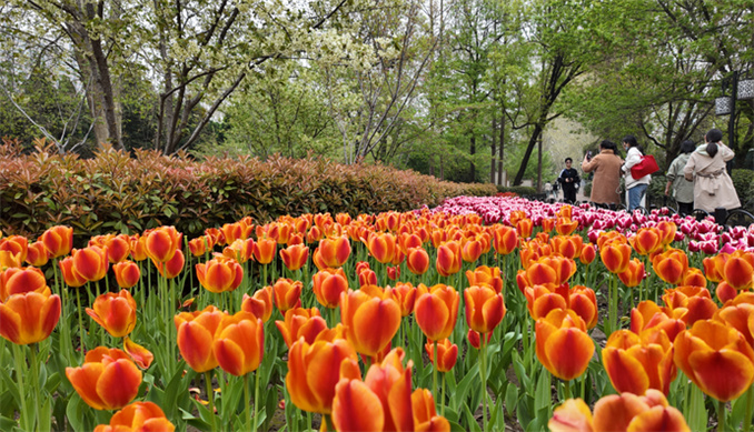 牡丹園位于公園西部,有牡丹、芍藥128個(gè)品種10000余株。每年4月牡丹花開,色彩斑斕,雍容華貴。櫻花是人民公園的標(biāo)志性園林特色花木。每年4月中旬,櫻花盛開時(shí),芬芳馥郁,落英繽紛,櫻花與同期開放的郁金香、桃花共同構(gòu)成“三花爭艷”的春日盛景。