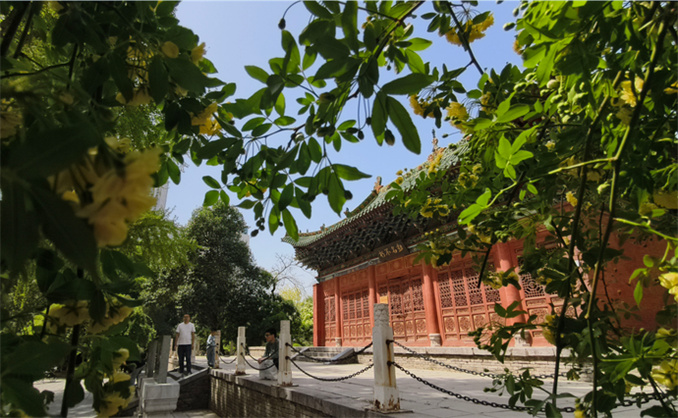 公園南門內(nèi),一株老國槐參天蔽日,枝葉密生,有著巨大球形樹冠。鄭州市政府2018年12月頒發(fā)的“鄭州市古樹”牌子赫然立在樹前,當(dāng)年這株老國槐樹齡170年,為三級古樹。這株修建胡公祠時(shí)移植而來的老國槐是公園的鎮(zhèn)園之寶,也是鄭州市的“明星”樹,在幾代園林人的精心管理下,一直保持著旺盛的生命力。