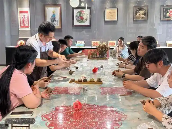 為讓泥哨更貼合現(xiàn)代生活,楊強(qiáng)強(qiáng)在現(xiàn)場(chǎng)展示了一系列創(chuàng)新作品,像卡通造型的土撥鼠泥哨、嵌入LED燈的夜光地坑院文創(chuàng)擺件等。這些作品既保留了泥塑粗獷質(zhì)樸的質(zhì)感,又融入潮流設(shè)計(jì),吸引了不少年輕游客。通過(guò)“手把手教學(xué)、面對(duì)面交流”,非遺傳承人走進(jìn)活動(dòng)現(xiàn)場(chǎng),打破非遺與大眾的距離感。盧氏泥哨互動(dòng)性強(qiáng),無(wú)論老人還是孩子,都能在捏泥、吹哨過(guò)程中感受到非遺的溫度。這種“可觸摸、可帶走”的體驗(yàn),成為非遺融入現(xiàn)代生活的重要路徑。