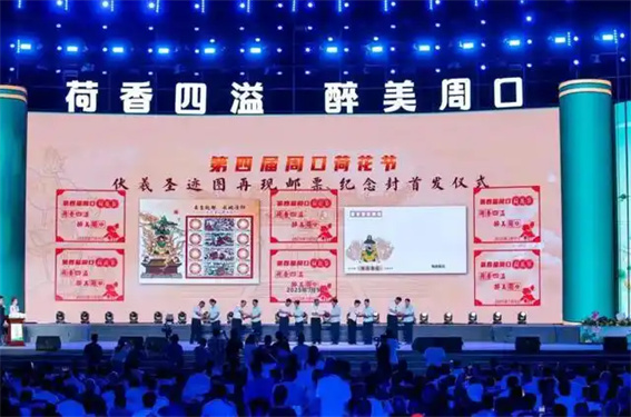 活動現(xiàn)場,中國郵政特別發(fā)行的伏羲圣跡圖郵票和紀念封正式揭幕。郵票以淮陽伏羲文化為主題,通過藝術(shù)化手法呈現(xiàn)人文始祖的智慧哲思,成為周口文化IP的創(chuàng)新表達。