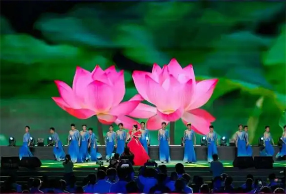 啟動儀式上,一場場融合詩經(jīng)雅韻、國潮新風(fēng)、戲曲精粹的文藝演出精彩上演。開場歌舞《花開盛世舞霓裳》以華美舞姿展現(xiàn)中華禮樂文明;情景劇《平糧臺的千年回響》通過時空對話,詮釋伏羲文化的當代價值;青春歌舞劇《小城夏天》《盛世國風(fēng)》則以活力四射的表演,展現(xiàn)傳統(tǒng)文化在年輕群體中的創(chuàng)新傳承;朗誦藝術(shù)家深情演繹《詩經(jīng)·陳風(fēng)》,帶領(lǐng)觀眾穿越千年感受“彼澤之陂,有蒲與荷”的詩意周口;歌曲《愚公移山》以激昂旋律傳遞奮斗精神;尾歌《淮陽在等你》則用悠揚旋律向四海賓朋發(fā)出盛情邀約。