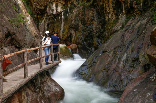 在峽間、棧道旁處處都可感受到一瀉而下飛瀑奇觀
