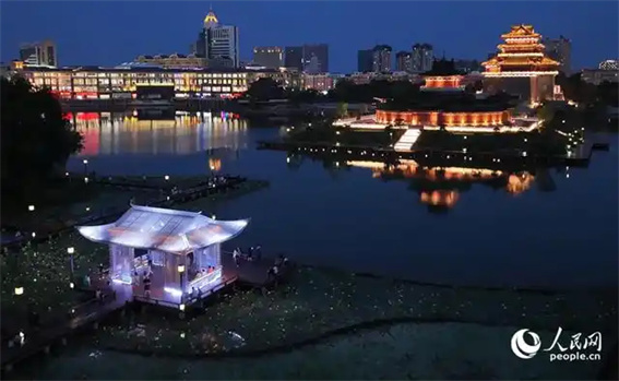 暮色四合時(shí),環(huán)湖步道的燈光次第亮起。酒吧街的霓虹與寶津樓遺址的輪廓燈交相輝映,年輕人舉著宋式茶點(diǎn)自拍,舞臺(tái)前豫劇《穆桂英掛帥》的唱段剛落,星空音樂(lè)會(huì)的電子旋律又起。