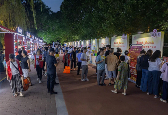 銀發(fā)養(yǎng)生區(qū)里,信陽毛尖在鈞瓷盞中舒展成云霧,牡丹養(yǎng)生糕點上印著精致的花紋,旅行中的美味讓時光放慢了腳步;后備箱驛站中,自駕旅行族的行囊裝著真空包裝的道口燒雞、便攜裝胡辣湯,美食填補旅途中的那份自在與愜意;“音樂+啤酒”區(qū)是夏日的清涼出口,駐唱歌手抱著吉他坐在高腳凳上,在休閑旅游街區(qū)場景飄蕩出悠揚民謠。