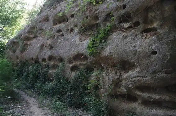 △ 呂寨石窟開鑿在伊河岸邊距地面高50米的崖壁上。