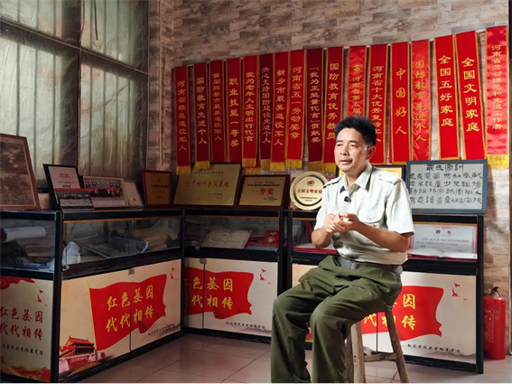 如今,耿家的“紅色接力”還在繼續(xù),妻子秦瑞霞放下服裝店,成了展館管理員,登記、接待;大兒子耿文雷攢錢支持父親買文物;二兒子耿文偉,2013年大學(xué)畢業(yè)后參軍中央警衛(wèi)團(tuán),還參加了抗戰(zhàn)勝利70周年盛大閱兵;女兒耿文斐是小學(xué)老師,把實(shí)物故事畫成漫畫,展館周邊的紅色文化墻成了網(wǎng)紅打卡點(diǎn)。