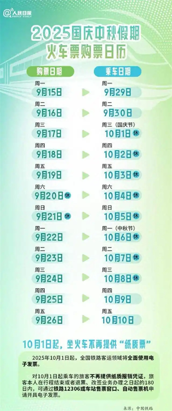 9月22日售中秋節(jié)(10月6日)火車票