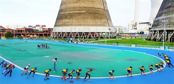 該游園由一個廢棄熱電廠改造而來,當?shù)貏?chuàng)新盤活老舊工業(yè)遺存,推進工業(yè)歷史印記、運動旅游休閑融合發(fā)展,保留部分工業(yè)標志性建筑,通過修繕保護與“微改造”,將工業(yè)文化特色與現(xiàn)代時尚運動有機交融,增添規(guī)劃了主題商業(yè)、運動休閑、親子游樂、工業(yè)記憶等新的運動休閑設施功能片區(qū),將工業(yè)文化充分活化利用,煥發(fā)經(jīng)濟新活力,成為市民和游客休閑運動的打卡新消費場景。