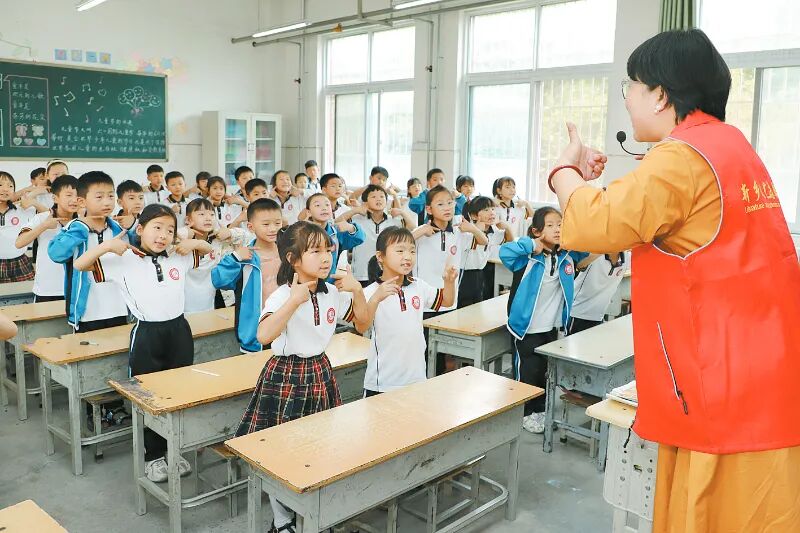 輝縣市冀屯鎮(zhèn)冀祥小學(xué)的孩子向新鄉(xiāng)文藝志愿者學(xué)唱豫劇選段