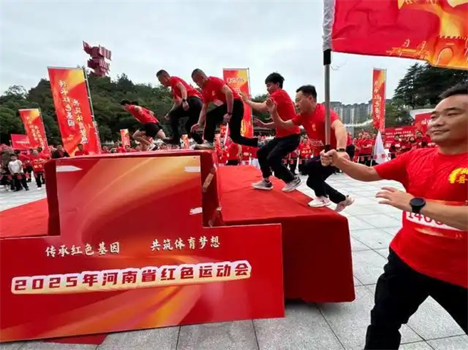 本次紅色運動會,既是對全省紅色體育發(fā)展成果的集中檢閱,更是對大別山精神的生動傳承。運動會設(shè)置了“支援前線”“披荊斬棘”“前仆后繼”“薪火相傳”4個項目,將戰(zhàn)爭年代軍民一心,團結(jié)協(xié)作、浴血奮戰(zhàn)的場景在運動場上生動再現(xiàn),同時也是對選手們的速度、力量、體能、團隊配合等方面的考驗,從而將紅色基因完美融合在全民健身活動中,讓選手在比拼中感悟革命先輩的奮斗精神,在運動中傳遞紅色薪火。