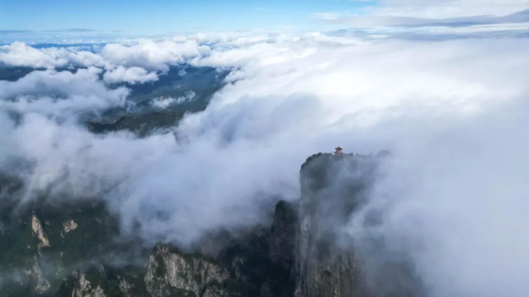 看翻滾的云海如仙境般鋪陳腳下