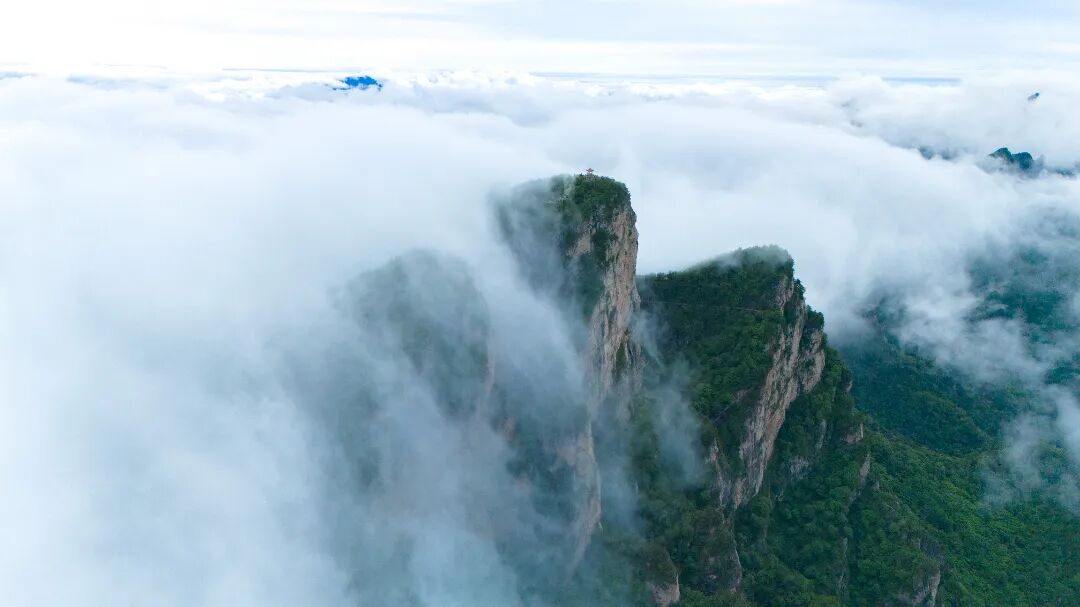 遠近峰巒在云海中時隱時現(xiàn)