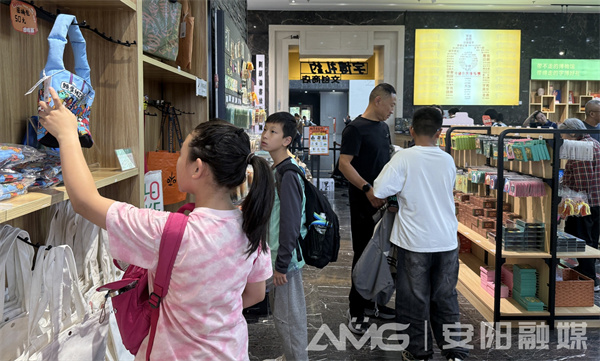 10月1日的中國(guó)文字博物館“字博禮約”文創(chuàng)商店,早已被熙攘人流填滿——游客們的目光,全被架上那些“會(huì)說(shuō)話”的文創(chuàng)牢牢鎖住。