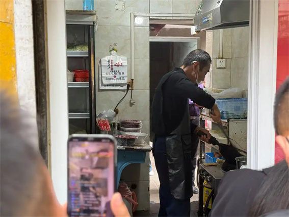 不少即便吃不到的客人,也在直播記錄店主翻炒的身影,想捕捉“炒八摻”的流量。