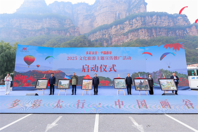太行山下,畫筆與鏡頭聚焦;畫谷周邊,文脈與山水交融。10月24日,在被譽(yù)為“中國(guó)畫谷”的林州市石板巖鎮(zhèn),2025“多彩太行·中國(guó)畫谷”文化旅游主題宣傳推廣活動(dòng)正式啟動(dòng)。 河南省文化和旅游廳二級(jí)巡視員孫彪,安陽市人民政府副市長(zhǎng)馬紅賓,安陽市文化廣電體育旅游局局長(zhǎng)劉潔華,中共林州市委副書記、市長(zhǎng)田元飛等出席。