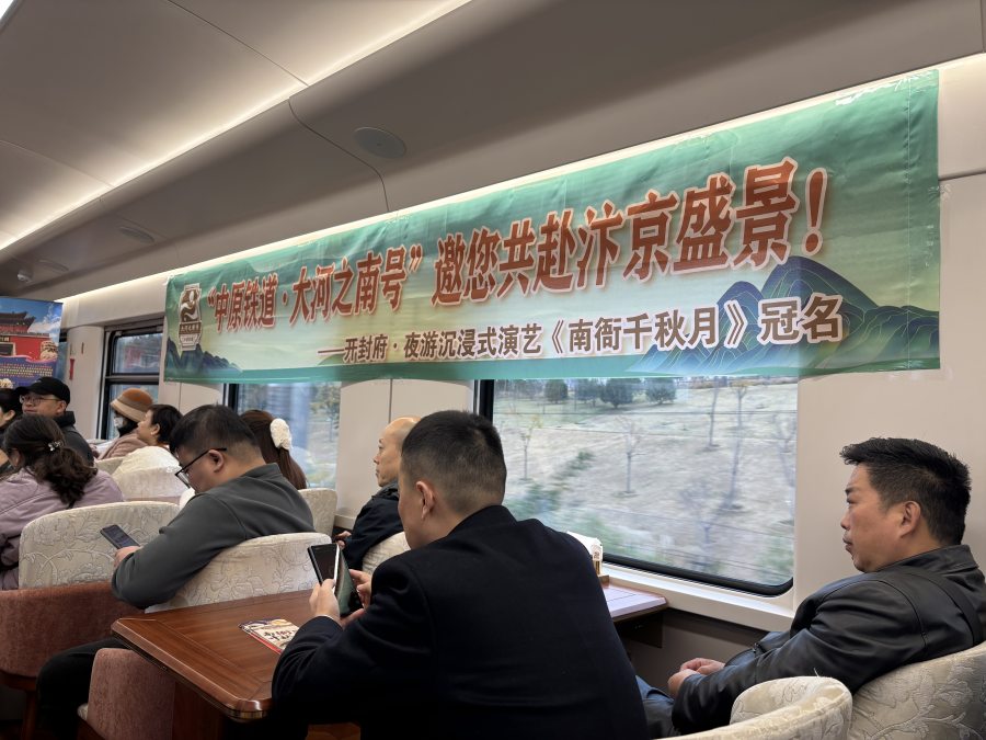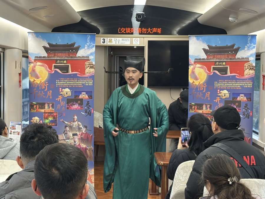 “沒想到在火車上就提前‘入戲’了!”初冬清晨,盡管寒氣襲人,但在“中原鐵道·大河之南號”特色旅游列車上,游客陳女士的興奮之情溢于言表。窗外景物流轉(zhuǎn),車廂內(nèi),開封府沉浸式演藝的片段已悄然在流轉(zhuǎn),將大家的心神引向那座千年古城——開封。這是11月17日,一趟別開生面的文化之旅正緩緩啟程。
