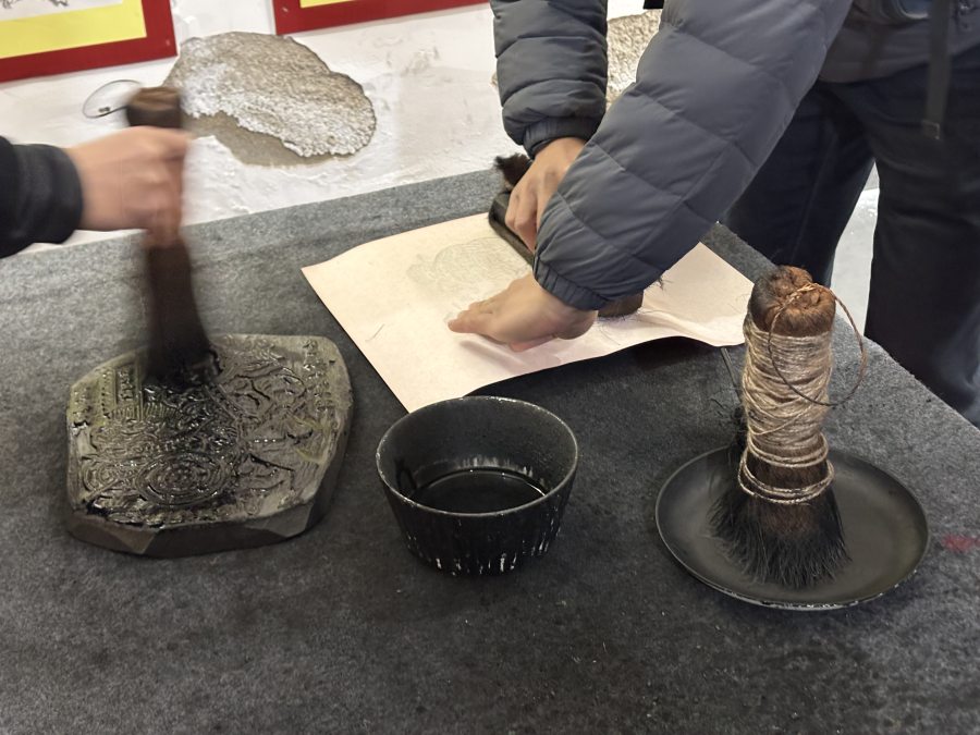 在園內(nèi),宋式點茶的優(yōu)雅表演引得眾人駐足,國際版畫美術(shù)館的藝術(shù)氣息讓人流連。最讓人難忘的是木版年畫體驗,游客陳女士親手拓印年畫,興奮地分享:“第一次自己制作木版年畫,每一道工序都透著傳統(tǒng)文化的溫度,太新奇了!”