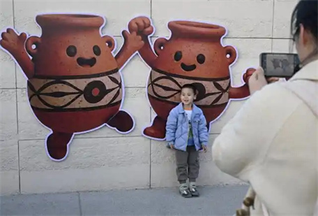 除了核心遺跡,園區(qū)內(nèi)主題鮮明的景觀雕塑、模擬先民生活的互動體驗(yàn)區(qū),以及融合自然生態(tài)的漫步空間,都成為游客流連的“打卡點(diǎn)”。游客歡樂的交談聲在蒲葦間回蕩,與跨越數(shù)千年的文明遺存交織在一起,形成一幅歷史與當(dāng)下對話的生動圖景。