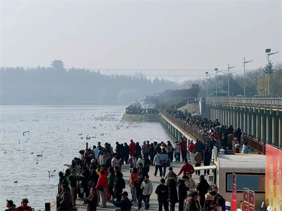 12月6日,三門峽天鵝湖國家城市濕地公園觀景棧道上人頭攢動,持各地口音的贊嘆聲此起彼伏。記者從三門峽黃河天鵝湖濕地保護(hù)中心獲悉,僅12月6日,天鵝湖國家城市濕地公園人流量便達(dá)5萬余人次,迎來今冬首個客流高峰。