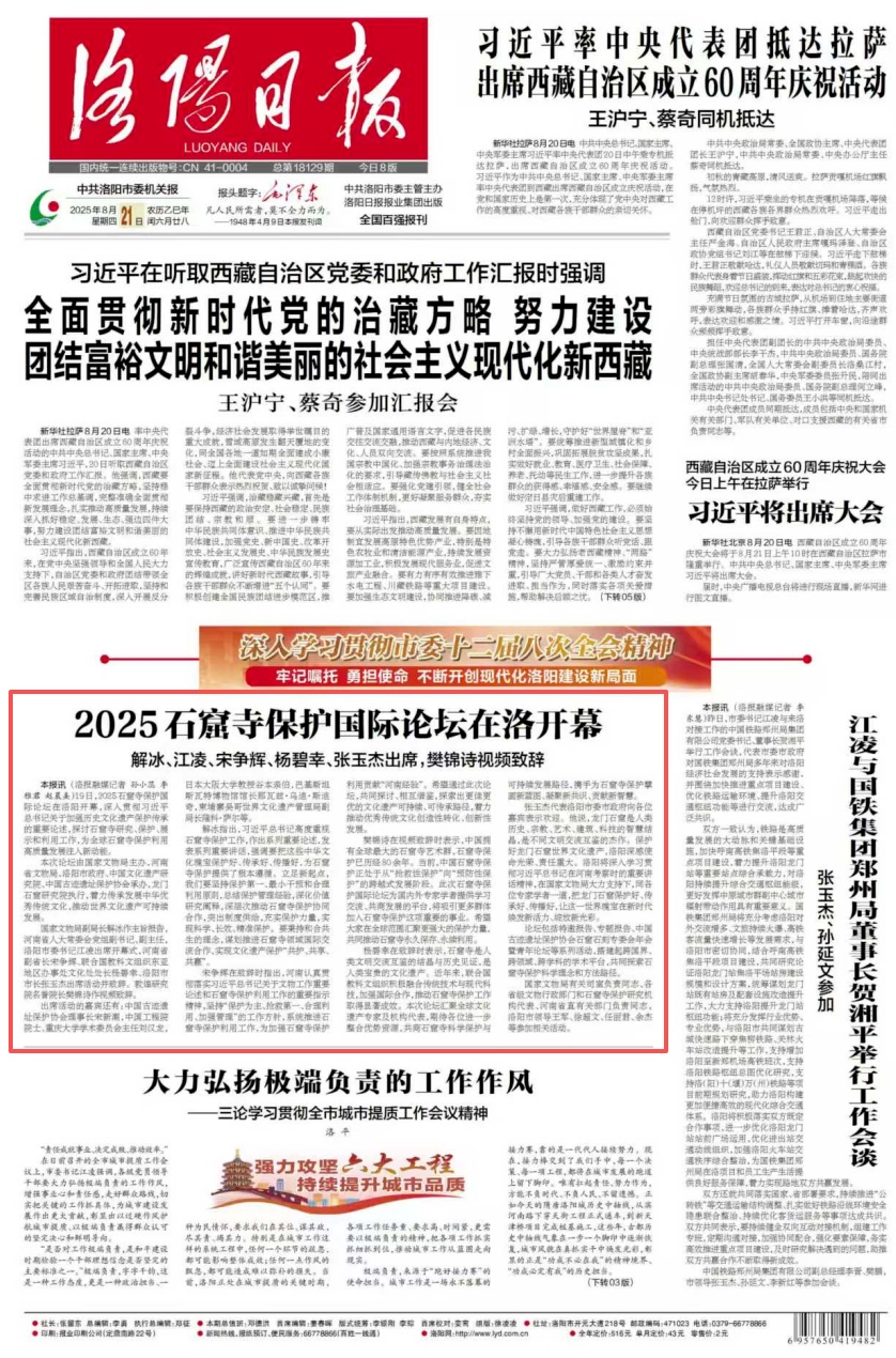 洛陽日報盡顯本土溫度與專業(yè)深度,在《從龍門二十品看文物保護創(chuàng)新》一文,聚焦書法藝術瑰寶的數(shù)字保護,讓傳統(tǒng)文化“活起來”;《2025石窟寺保護國際論壇在洛開幕》則呈現(xiàn)洛陽作為文化遺產(chǎn)保護前沿陣地的國際視野,彰顯其在全球石窟寺保護與研究領域日益提升的話語權與影響力。