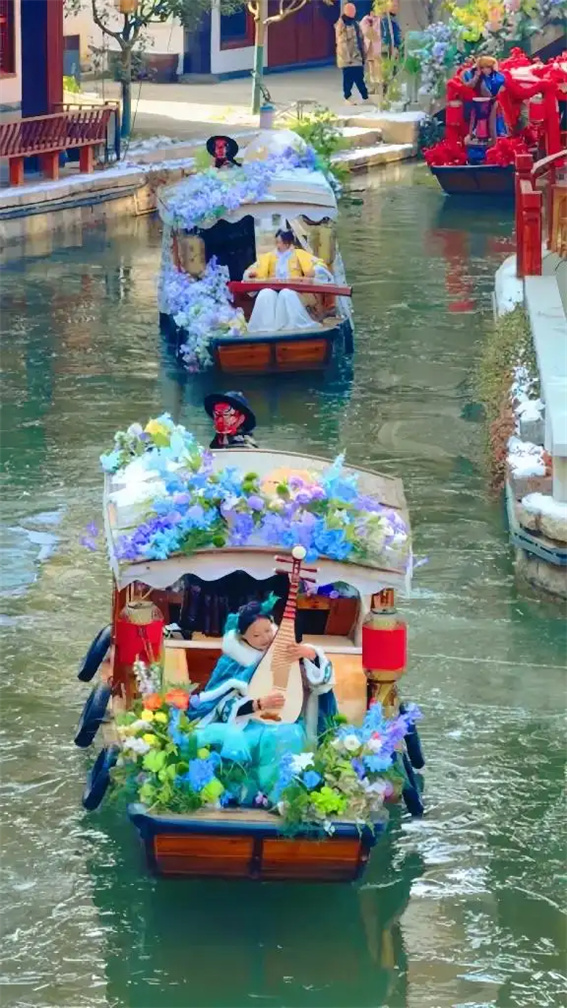 在鸞州渡假日度假小鎮(zhèn),千年非遺打鐵花璀璨綻放,NPC舞蹈快閃、花船巡游與之相映成趣,入園游客摩肩接踵、駐足打卡。