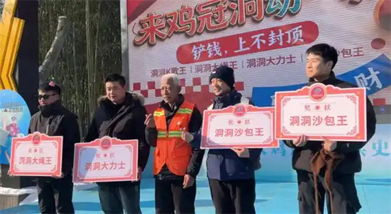 雞冠洞“暖冬市集”煙火氤氳,福氣餃子宴、招財丸子湯等傳統(tǒng)美食香氣撲鼻,西游主題NPC穿梭巡游,懷舊踢毽子、推鐵環(huán)游戲喚醒童年記憶,“網紅大爺”與游客親切合影,歡聲笑語不斷。