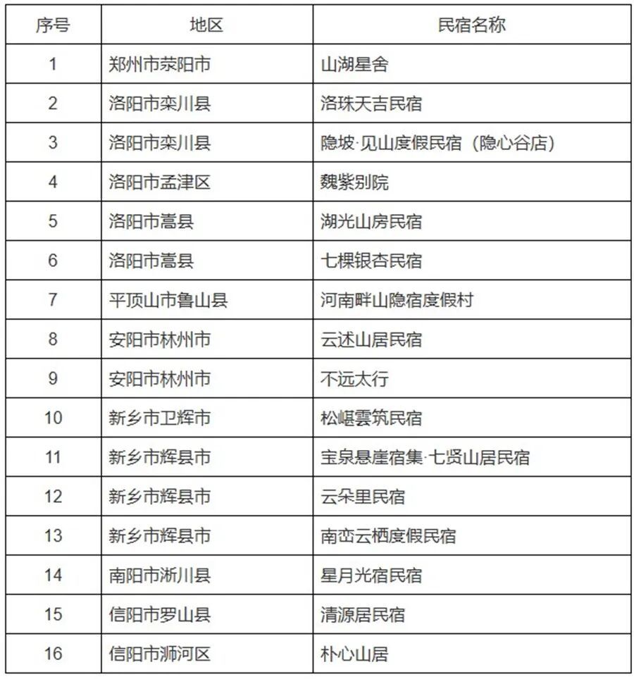近日,省文化和旅游廳發(fā)布公告,根據(jù)《〈鄉(xiāng)村旅游民宿質(zhì)量要求〉(DB 41/T 2277-2022)實施工作導(dǎo)則》,經(jīng)河南省旅游民宿等級評定委員會評審,鄭州市滎陽市山湖星舍等16家旅游民宿符合河南省五星級鄉(xiāng)村旅游民宿標(biāo)準(zhǔn),鄭州市登封市清香苑民宿等6家旅游民宿符合河南省四星級鄉(xiāng)村旅游民宿標(biāo)準(zhǔn)。