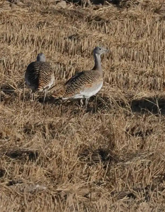 隆冬時節(jié),黃河灘涂寒意正濃,濮陽縣黃河濕地省級自然保護區(qū)內卻生機涌動。1月6日,保護區(qū)監(jiān)測站工作人員在習城鄉(xiāng)萬寨村、渠村鄉(xiāng)劉海村的麥田里,驚喜發(fā)現(xiàn)大鴇種群正在悠閑覓食,灰褐色的羽衣與田間麥苗相映成趣,時而低頭啄食,時而警覺張望,構成一幅人與自然和諧共生的冬日圖景。經現(xiàn)場統(tǒng)計,此次觀測到的大鴇數(shù)量達70余只,這也是被譽為“鳥類大熊貓”的國家一級保護動物連續(xù)第6年駐留這片黃河濕地。