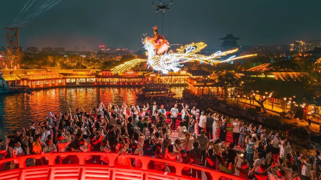 從正月初一持續(xù)至正月十六,每天有超4000場(chǎng)實(shí)景演出,上千名NPC,上萬(wàn)盞花燈帶游客沉浸式體驗(yàn)盛世中國(guó)年。