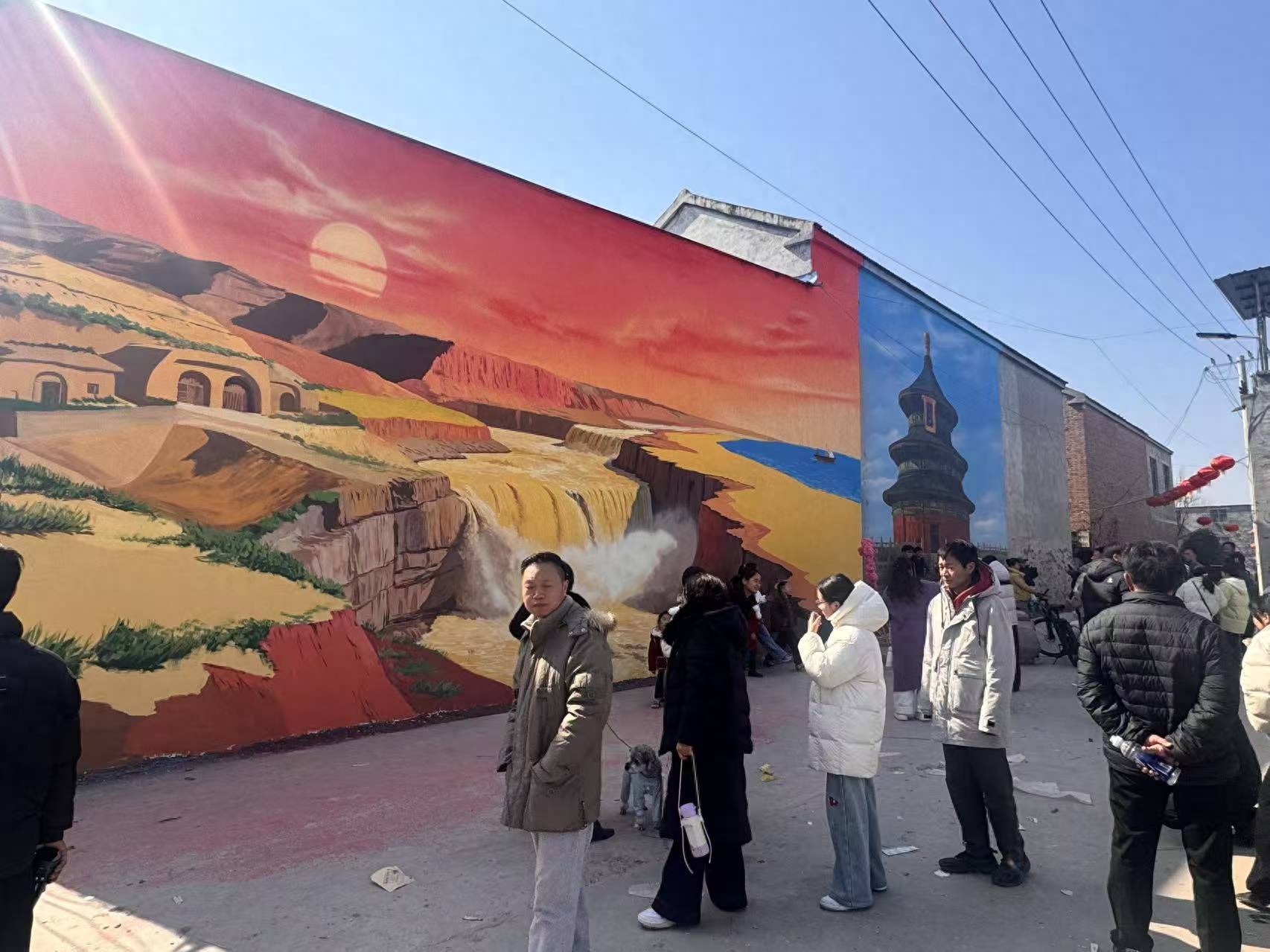 村里的老黨員吳西同也站在不遠處。他年輕時在北京當兵,此刻看著墻上的黃河和天壇,也看著墻下來來往往的人。