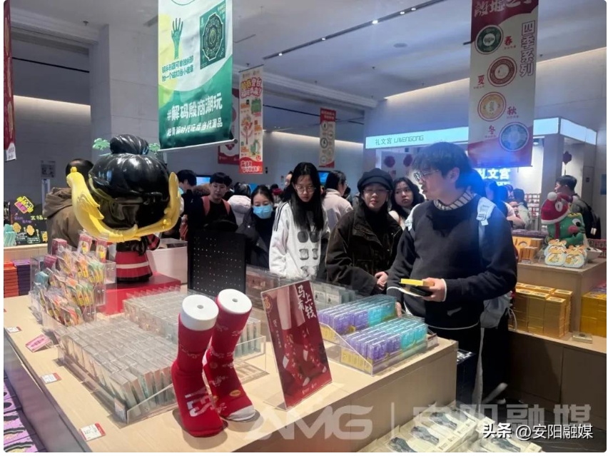 金鞍耀新春,殷墟年味濃。春節(jié)假期,殷墟博物館禮文宮內(nèi)人頭攢動(dòng),熱鬧非凡,貨架前游客摩肩接踵,收銀臺(tái)前選購(gòu)、集章的隊(duì)伍蜿蜒不絕。30余款新春主題文創(chuàng)新品聯(lián)袂登場(chǎng),憑借高顏值、強(qiáng)寓意、實(shí)用性成為新春“爆款”,讓三千年殷商文化走出展柜,融入千家萬(wàn)戶(hù)的新春生活。