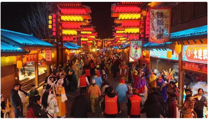 開封的城墻新春燈會,晚上十點還排長隊;浚縣古城夜里燈火通明,小吃攤前排滿了人。