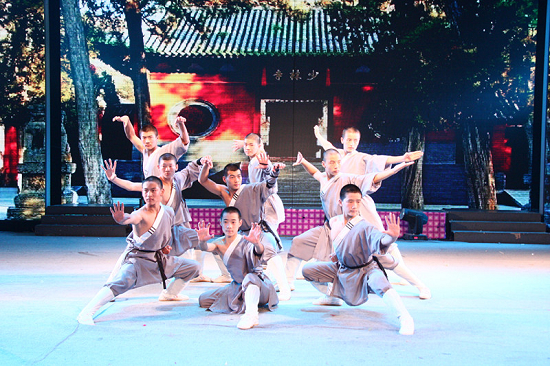 少林武僧英武逼人、朝氣勃勃、矯健強(qiáng)壯,血?dú)夥絼,現(xiàn)代舞臺(tái)聲光與背景大屏展示少林大景更是壯闊空前,一禪一武絕妙結(jié)合,為觀眾營(yíng)造出一場(chǎng)波瀾壯闊、色彩絢麗的藝術(shù)篇章……