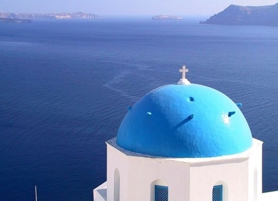 同樣是漫山遍野白色房子的圣托里尼,在色彩的運(yùn)用與規(guī)劃方面更是無與倫比。墻是白色的,而房頂是藍(lán)色的。房子依著陡峭的山崖而建,從水上坐船靠岸,映入眼簾的是一道天然的背景屏障。高聳入云的山上,在藍(lán)天與白云間,與之呼應(yīng)著的是跳躍的白墻藍(lán)頂、錯(cuò)落有致的房屋,像音符,像畫卷,更像是美輪美奐的海市蜃樓。